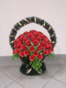 70 х 35 см, цветы розы, гипсофила, лист монстеры, лента