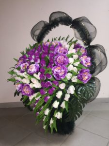 Корзина траурная Композиция Пионов с бутонами Розы ( бело сиреневый )