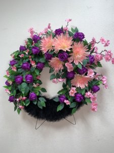 венок Круг Хризантема розовый Роза бутон сиреневый Сакура бархат розовый