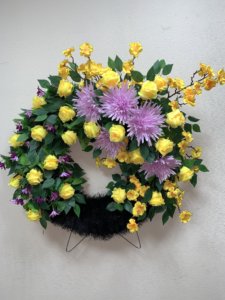 венок Круг Хризантема сиреневый Роза бутон желтый Сакура бархат желтый