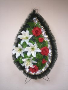 венок поминальный Лилия большая белый и Роза игольчатая красный