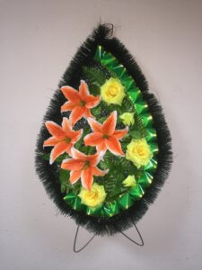 венок поминальный Лилия большая оранжевый и Роза игольчатая жёлтый