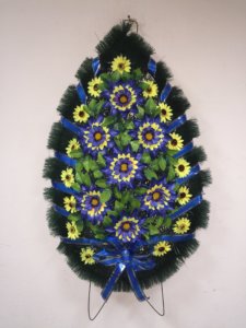 венок поминальный Лотос синий и ромашка жёлтый