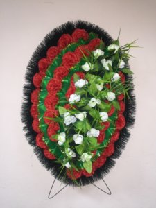 венок ритуальный Гвоздика красный и Яблоня белый