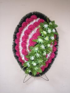венок ритуальный Гвоздика малиновый и Яблоня белый
