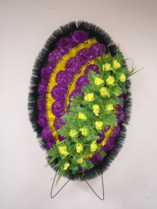 венок ритуальный Гвоздика сиреневый и Яблоня жёлтый