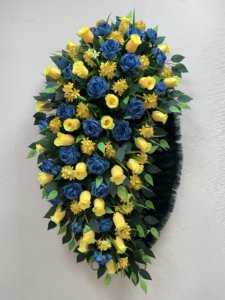 венок Роза Хендрикс фиолетово синий, Джусай и Роза бутон жёлтый