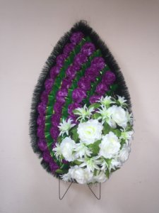 венок траурный Гвоздика сиреневый и Роза с Хризантемой игольчатой белый
