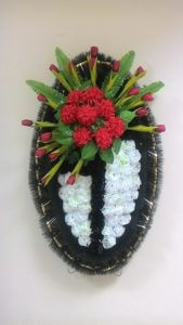 110 х 70 см (овал), гвоздика белая и черная, композиция хризантема и тюльпан