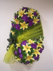 Венок траурный Лилия жёлтый Роза раскрытая сиреневый