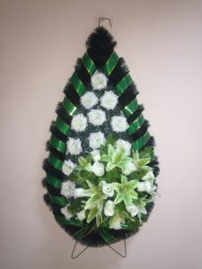 венок траурный Роза игольчатая белый и Лилия большая с бутонами розы